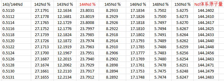 143Nd 142.90982 amu 143/144 Nd= 变量x