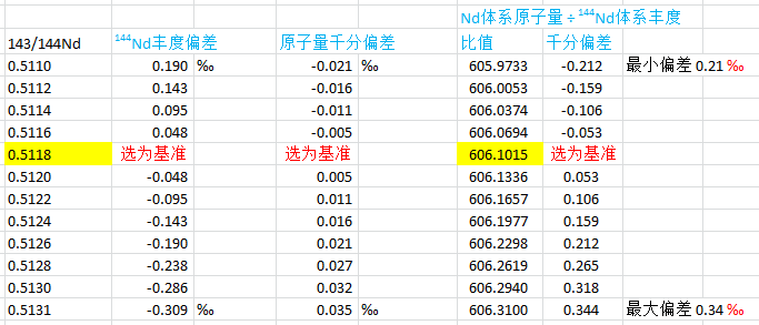 以0.5118为基准(因为它的144Nd丰度最接近IUPAC数值0.23798±19)
